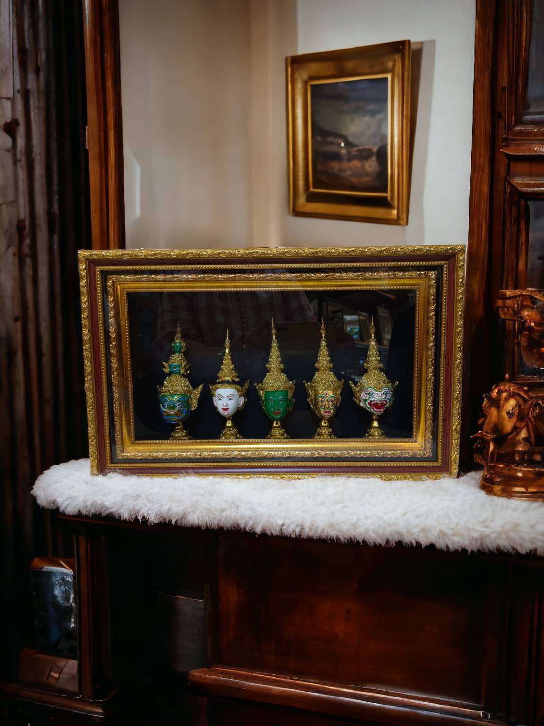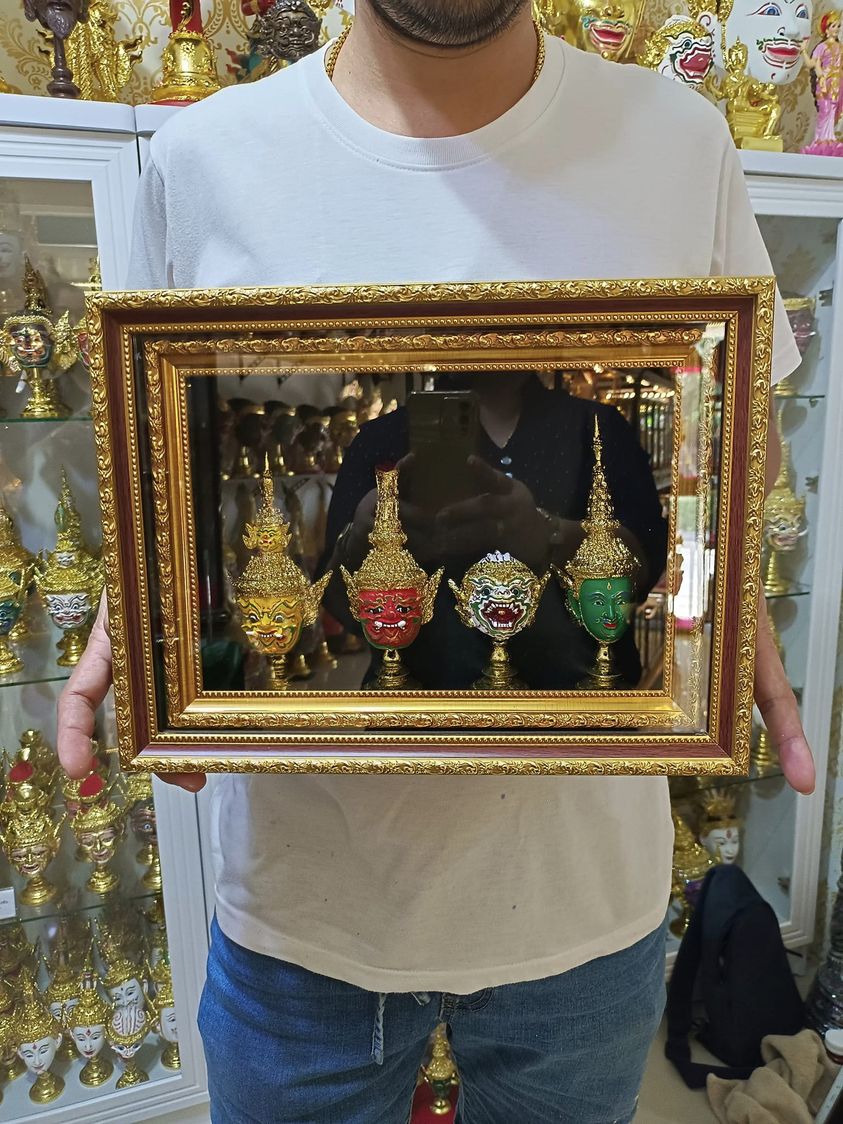 หัวโขนจิ๋ว 4 หัว พร้อมกรอบลายไทย